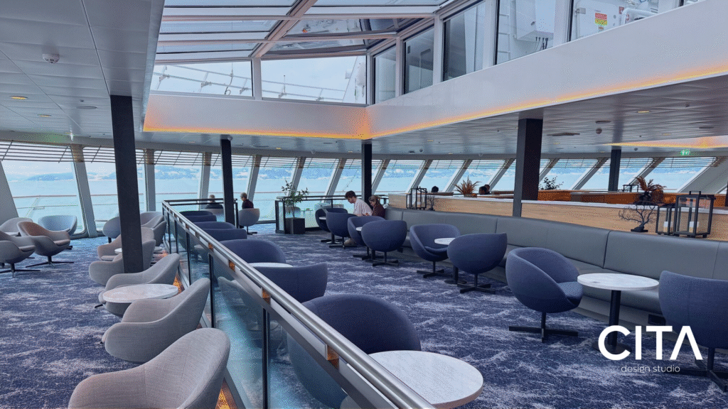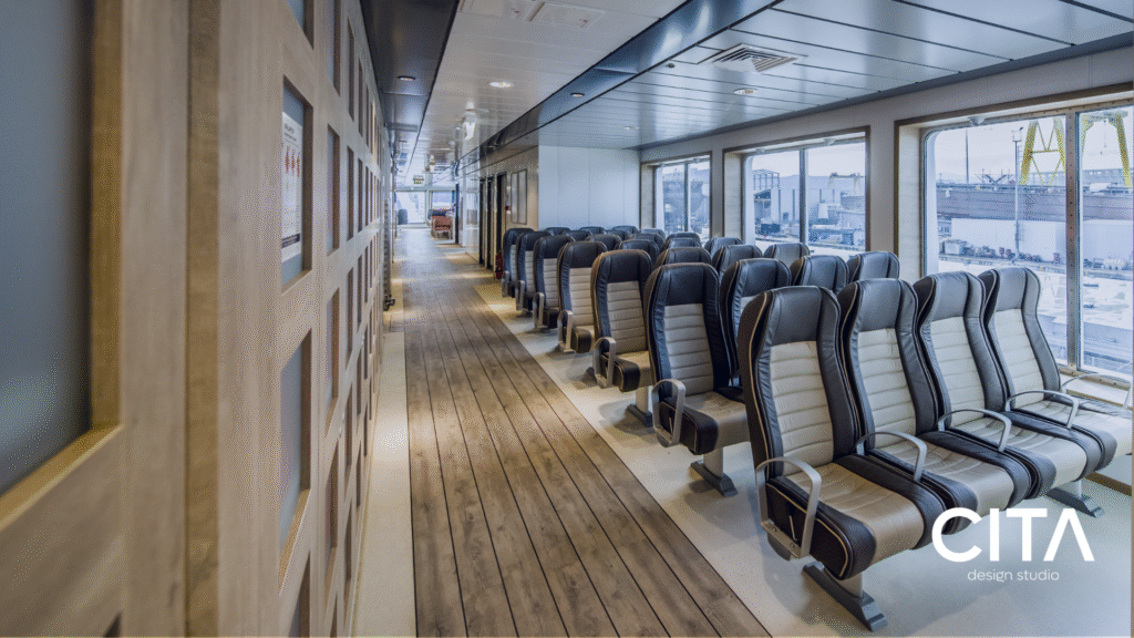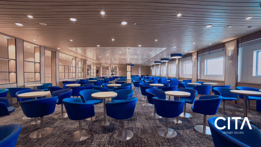 At CITA Design Studio, we deliver comprehensive interior design services for RoPax and ferry vessels, balancing comfort, operational efficiency, and refined aesthetics. These multifunctional maritime platforms require smart, durable, and human-centered solutions—our expertise transforms them into functional spaces that elevate both the passenger journey and the crew experience.